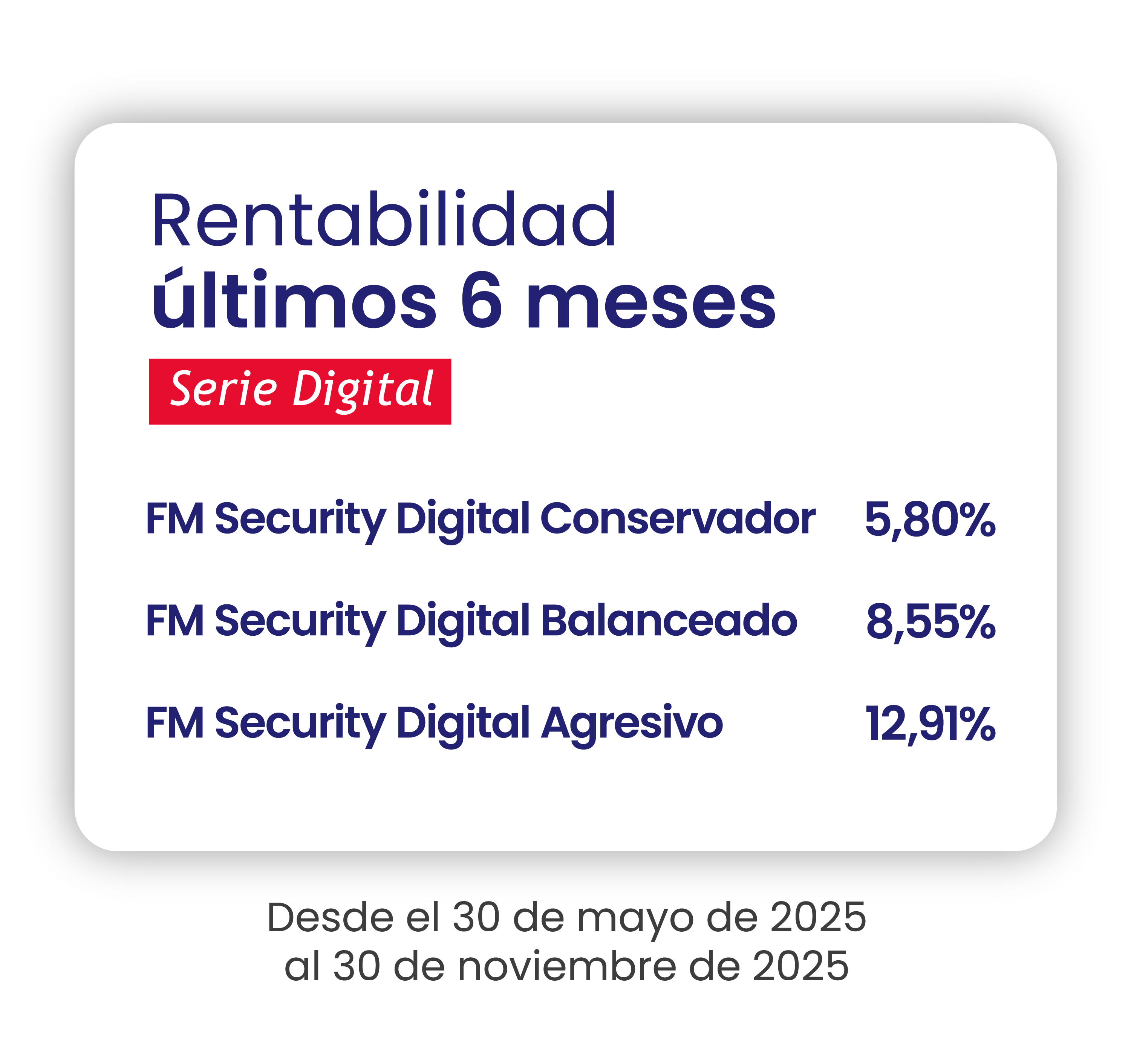 FM Security Digital Balanceado: si buscas un fondo con un nivel de riesgo moderado, esta alternativa es para ti ya que está pensado para inversionistas que valoran el equilibrio entre rentabilidad y riesgo.
